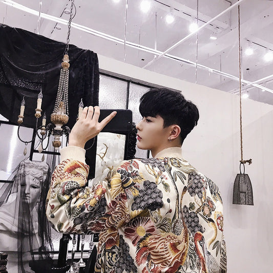 Whole Piece Embroidery Chinese Wind Element Crane Embroidered Jacket Men's Clothing