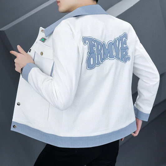 Autumn Men's Lapel New Corduroy Jacket Quality Stretch Slim Fit Coat Streetwear Men Fashion Color Block Jacket