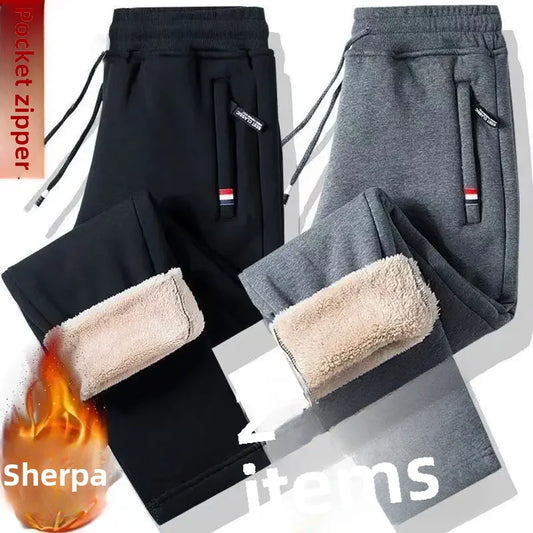 Winter Thickened Fleece-lined Men's Casual Pants Loose Fit Plus Sizes Warm Straight-leg Trousers Foot Bundling Style