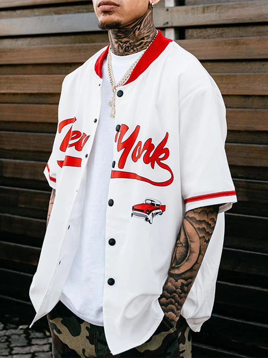 Hip Hop Mens Oversize Shirt Fashion Graphic Print Short Sleeve Loose Top Streetwear Men Y2K Style Stand Collar Buttoned Shirts