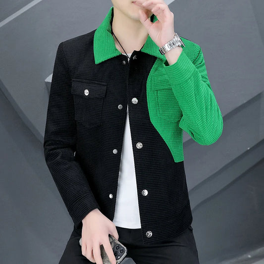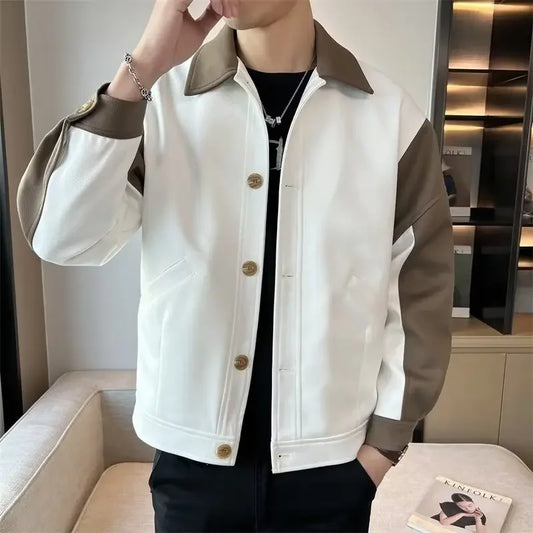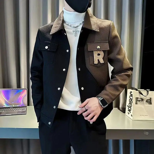 Men's Jacket Fried Street Vintage Colorblocking Workwear Jacket Autumn Lapel Jacket