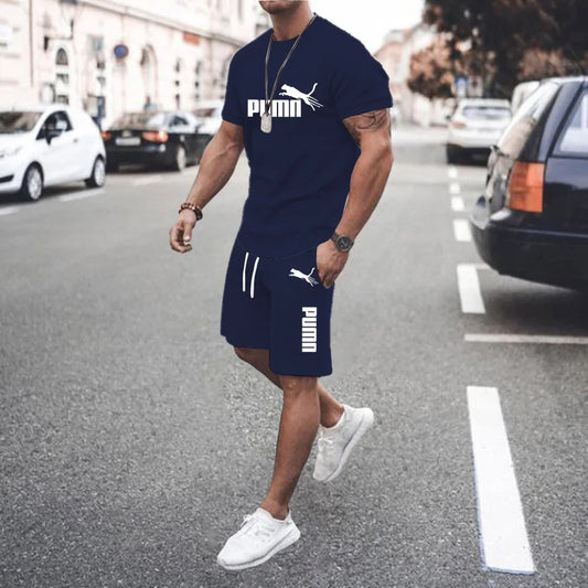 2024 New Summer Men's clothing short-sleeved T-shirt + five-point shorts 2-piece set tracksuit fashion jogging casual Men's sets