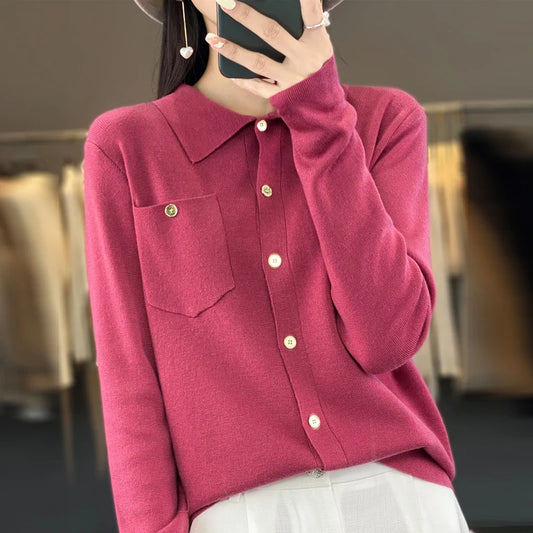 New Women's Cardigan Women's Cashmere Cardigan Women's Sweater Knitted Cardigan Polo Collar Cashmere Sweater