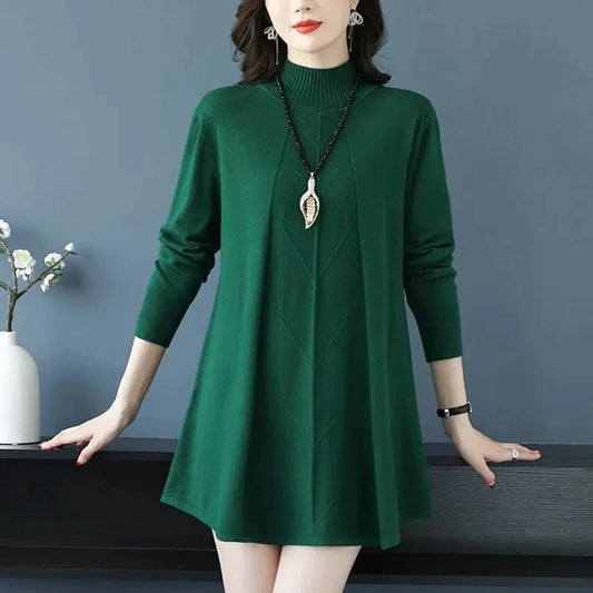 Autumn Winter Women Sweaters Pullover New Half High Neck Warm Bottoming Shirt Pull Mid Long Knitted Sweater Female Tops