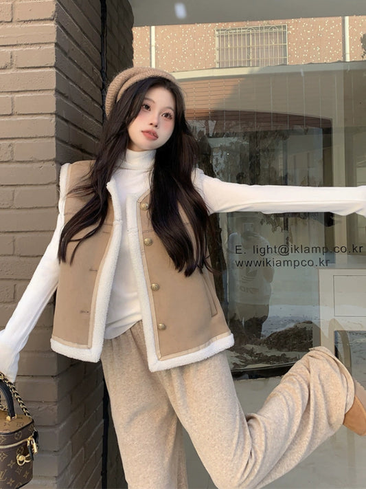 Imitation Lamb Wool Vest Jacket For Women Winter New Style French Retro Thickened Warm Outer Sleeveless Vest