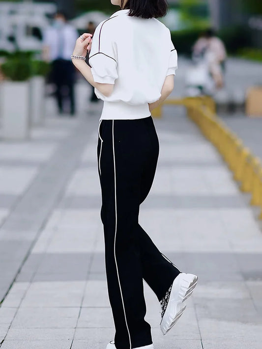 Pant Sets Women Wide-leg Pants Suit New Summer Short Sleeve Tops With Casual Pants Two Piece Set Conjuntos Para Mujeres 2 Piezas