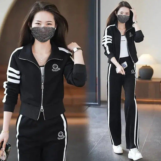 Fashion Sportswear Set for Spring and Autumn 2024 New Cardigan Loose Fitting Slimming and Age Reducing Two-piece Set