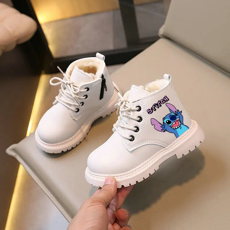 Children Stitch Snow Boots Winter velvet Ankle Boots Anime Cartoon Girl Flat Bottom Warm Boots Toddler Boys Casual Shoes