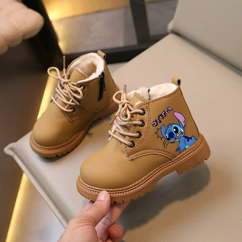 Children Stitch Snow Boots Winter velvet Ankle Boots Anime Cartoon Girl Flat Bottom Warm Boots Toddler Boys Casual Shoes
