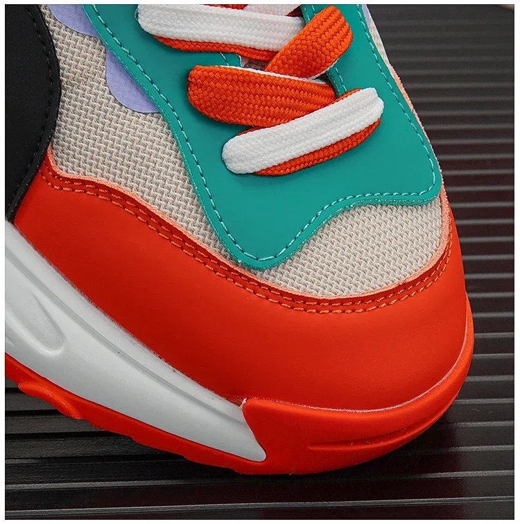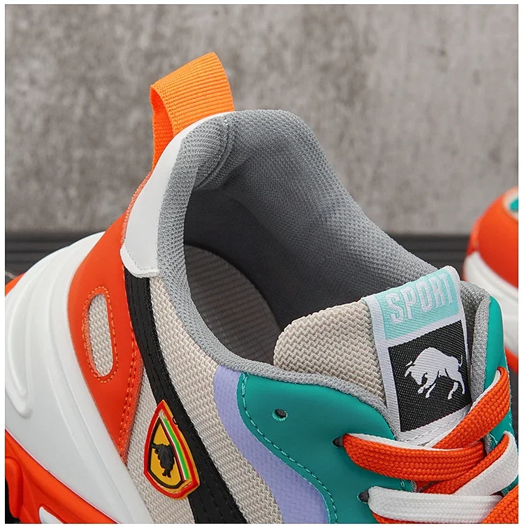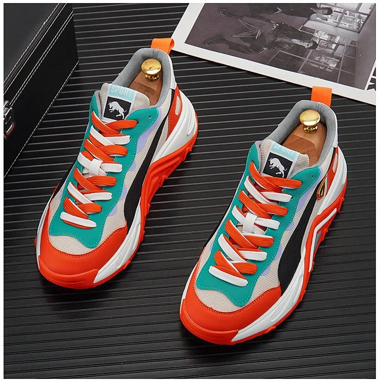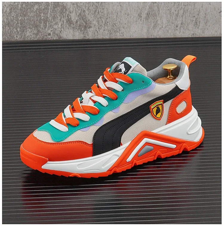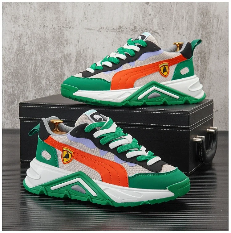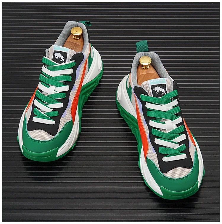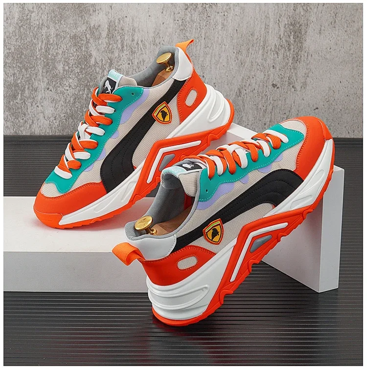 Men Luxury Chunky Sneakers Fashion Casual Secondary Leather Cowhide Mesh Breathable Height Increased Platform Running Shoes