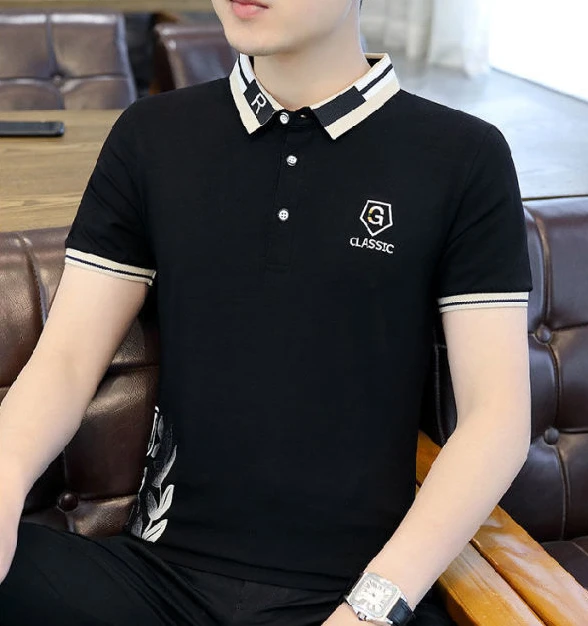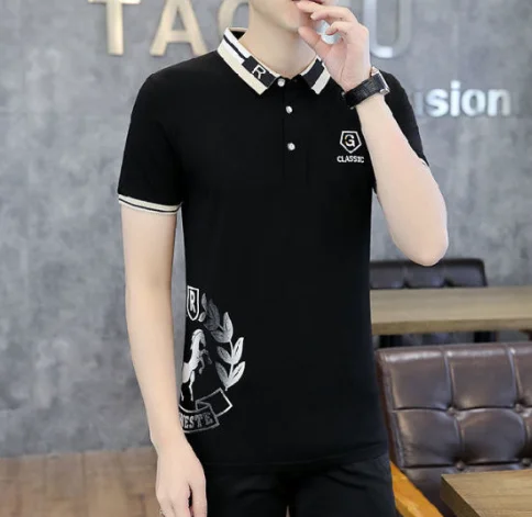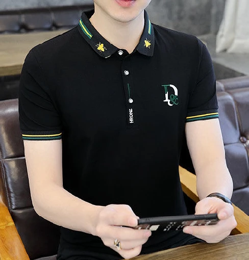 Vintage Polo T Shirt for Men Top Streetwear Black Striped Clothing Man With Collar Tee Shirts Ordinary Wholesale S Trashy Y2k Xl